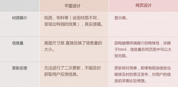 平面設(shè)計屬于比較傳統(tǒng)的信息媒介設(shè)計,一般會通過張貼、銷售、郵寄派送等形式進行傳播,這樣傳播的方式范圍小且成本較高,相對而言在這方面網(wǎng)頁設(shè)計的信息傳播能力卻非常的強,但依賴于第三方媒介的支持,平面設(shè)計卻擁有更為廣泛的受眾人群,不同的年齡層對于紙張或書本的信息接受能力總是強于網(wǎng)絡(luò)媒體的,畢竟網(wǎng)絡(luò)信息獲取的將會存在一個學(xué)習(xí)成本,在今后網(wǎng)絡(luò)信息的不斷普及以及終端媒介用戶體驗的不斷提升,在受眾人群方面在我看來差距會越來越小。